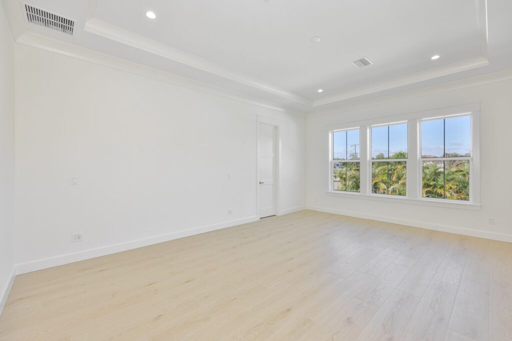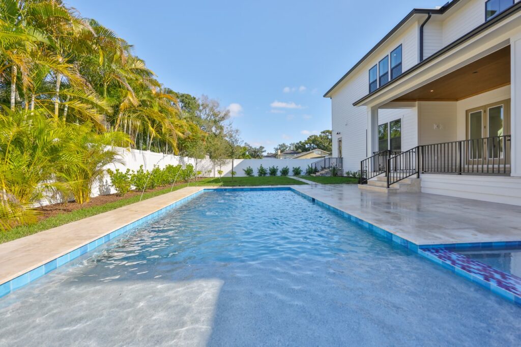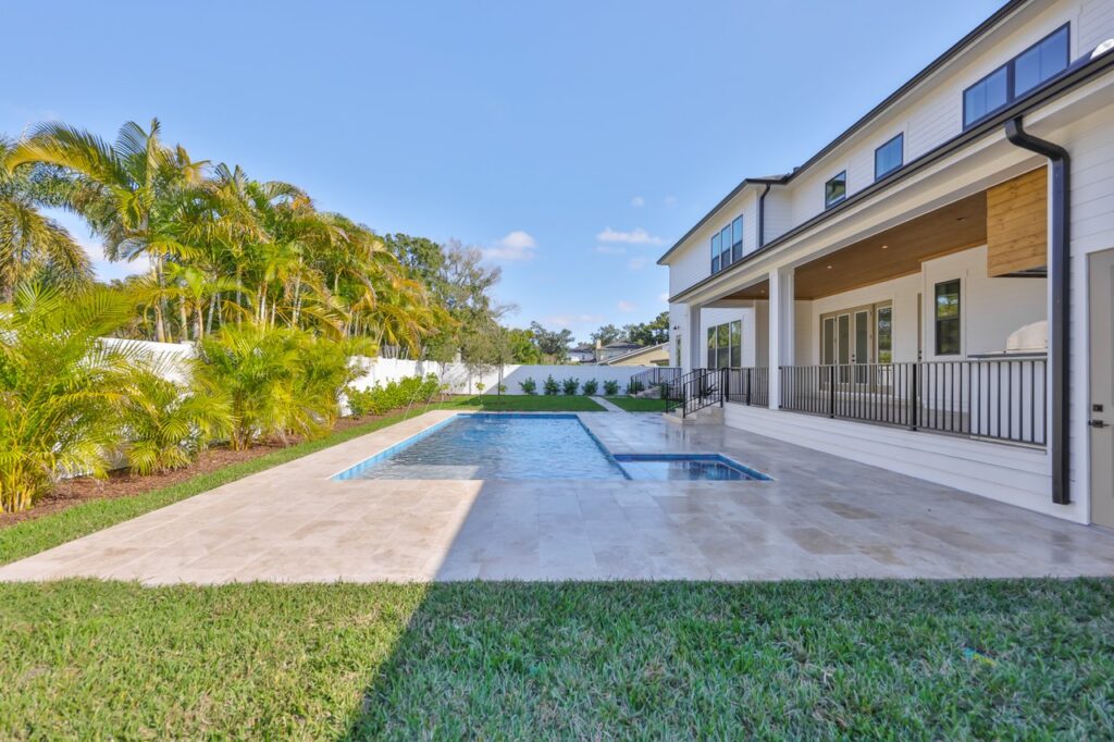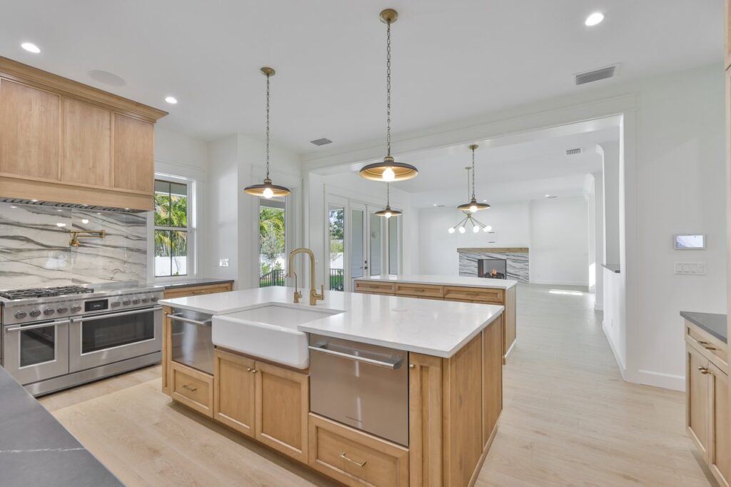 For more formal occasions, a dedicated dining room is located off the gallery, adjacent to a flex room that can serve as a study or playroom. Additional conveniences include a wet bar, a powder room, and a cabana bath for easy outdoor access. The home is completed with a versatile cabana room and ample parking in the form of a two-car garage plus a separate single-car garage.