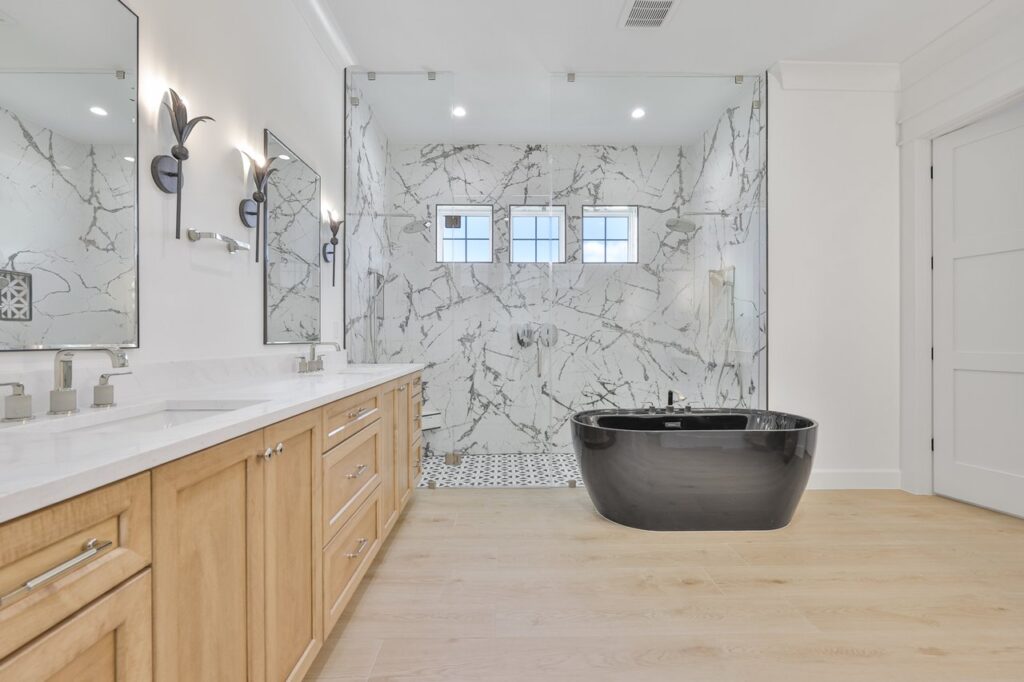 The second floor is dedicated to private and communal retreats. The luxurious primary suite boasts a spacious layout, a walk-in closet, and a spa-like primary bath with dual vanities, a freestanding tub, and a walk-in shower. Four additional bedrooms, each with access to their own bathrooms, ensure comfort and privacy for family and guests. Highlights of the upper level include a media room for entertainment, a laundry room with folding space, and a multi-gen suite ideal for extended family or visitors.